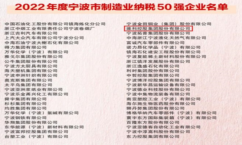 On the morning of July 14th, the 2022 Ningbo Innovation and Entrepreneurship Ranking, known as the "Ningbo Economic Oscar," was unveiled, and Veken Group was listed as Top 50 Ningbo Manufacturing Tax Payers for 2022.