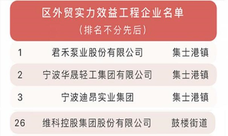 維科集團榮獲海曙區(qū)外貿(mào)實力效益工程企業(yè)20強