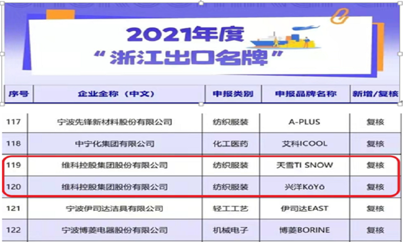 喜訊!興洋KOYO 、天雪TI SNOW再獲“浙江出口名牌”稱號(hào)