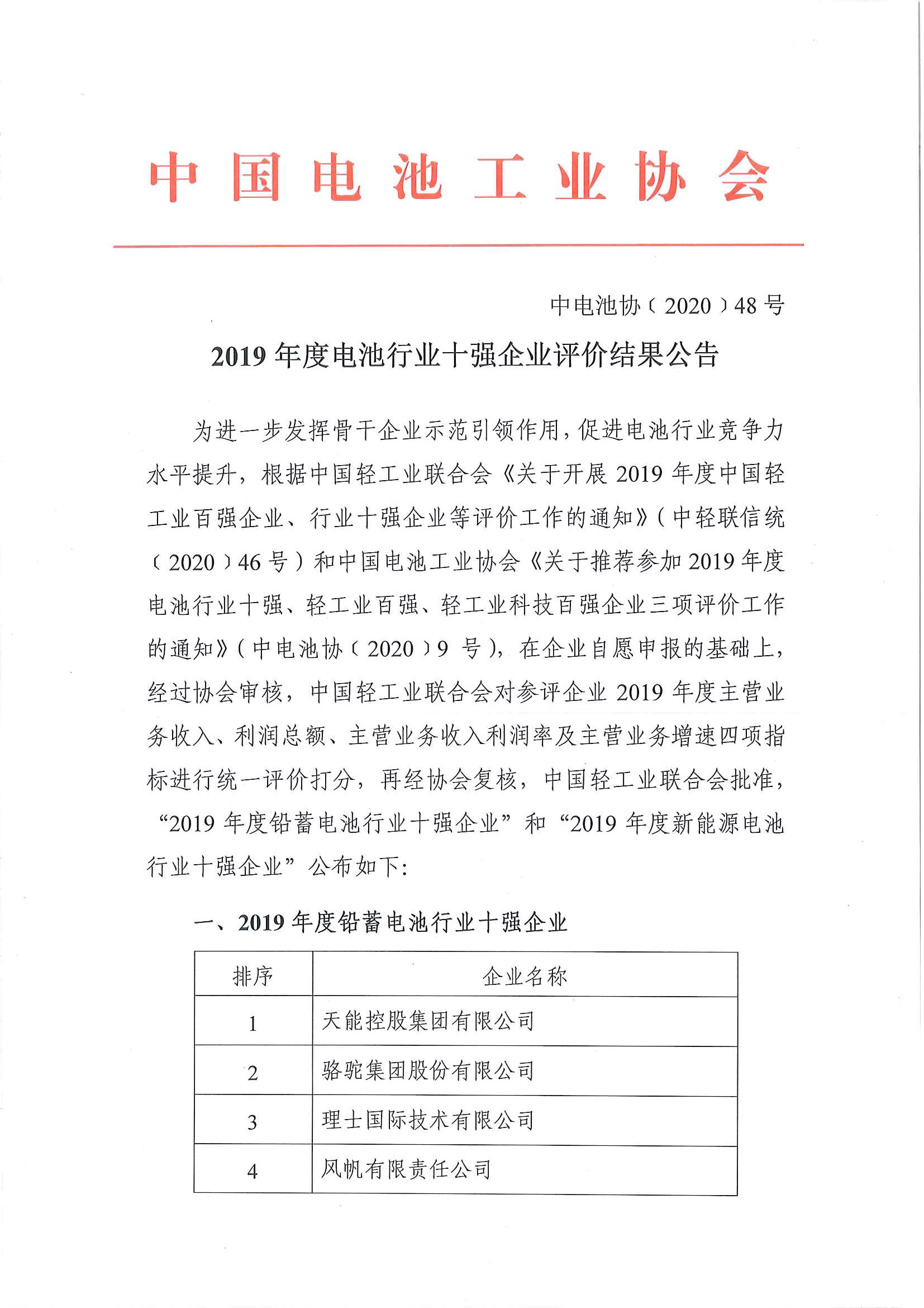 2020年7月31日,中國電池工業(yè)協(xié)會發(fā)布《2019年度電池行業(yè)十強(qiáng)企業(yè)評價(jià)結(jié)果公告》,維科技術(shù)再次位列新能源電池行業(yè)十強(qiáng)企業(yè)。