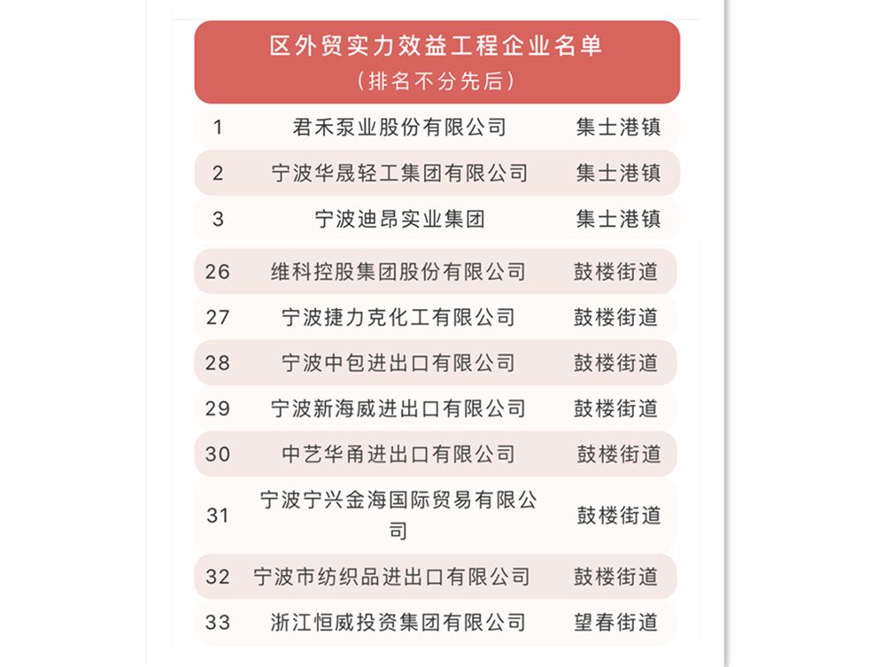 為充分發(fā)揮骨干外貿(mào)企業(yè)的引領(lǐng)示范作用,帶動(dòng)海曙廣大外貿(mào)企業(yè)積極融入國際國內(nèi)雙循環(huán)新發(fā)展格局,根據(jù)市商務(wù)局有關(guān)要求,結(jié)合海曙區(qū)實(shí)際,決定實(shí)施2021年海曙區(qū)外貿(mào)實(shí)力效益工程和外貿(mào)實(shí)力培育工程。經(jīng)過綜合打分的辦法,最后遴選出40家海曙區(qū)外貿(mào)實(shí)力效益工程企業(yè)(流通型、生產(chǎn)型各20家)和10家海曙區(qū)外貿(mào)實(shí)力培育工程企業(yè),維科集團(tuán)榜上有名。