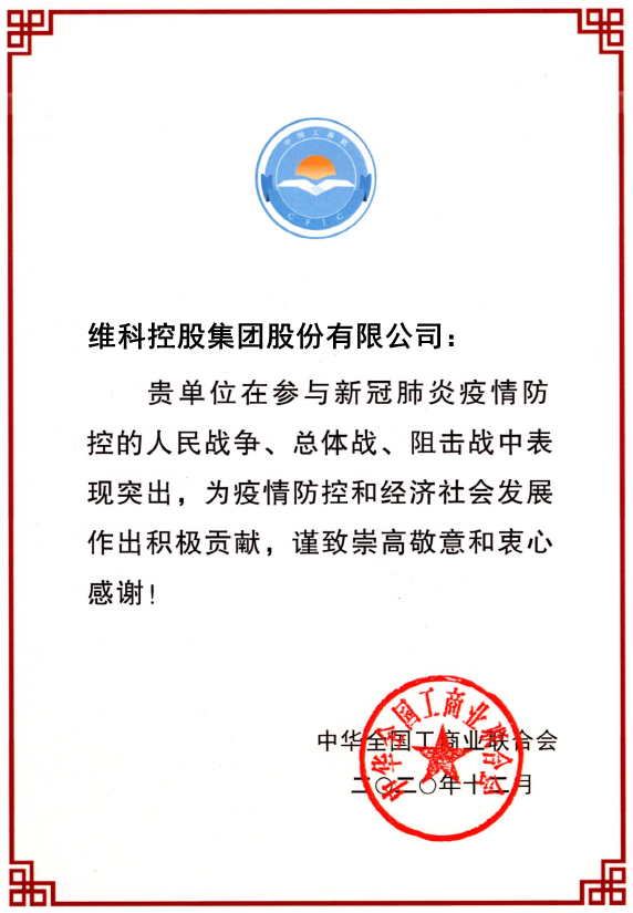 近日獲悉,全國工商聯(lián)對參與新冠肺炎疫情防控做出積極貢獻(xiàn)的先進(jìn)企業(yè)予以表揚,維科集團(tuán)位列其中。