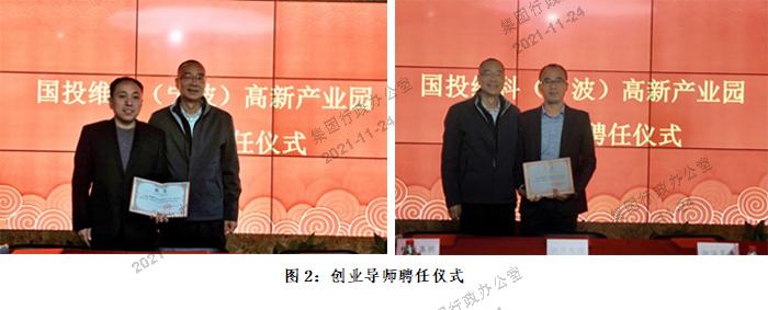 首先舉行了國投維科(寧波)高新產(chǎn)業(yè)園創(chuàng)業(yè)導(dǎo)師聘任儀式,由維科云羿項目總經(jīng)理胡軍為兩位創(chuàng)業(yè)導(dǎo)師頒發(fā)聘書。