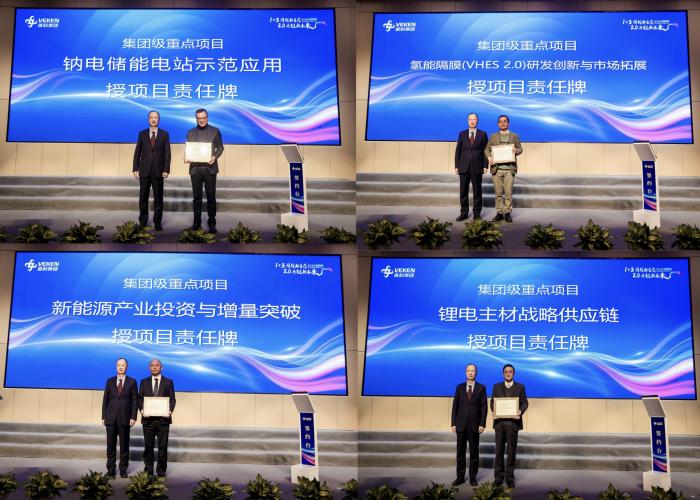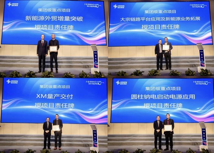 會上,鈉電儲能電站示范應(yīng)用、氫能隔膜( VHES 2.0)研發(fā)創(chuàng)新與市場拓展、新能源產(chǎn)業(yè)投資與增量突破、鋰電主材戰(zhàn)略供應(yīng)鏈、新能源外貿(mào)增量突破、大宗鏈路平臺應(yīng)用及新能源業(yè)務(wù)拓展、XM量產(chǎn)交付、圓柱鈉電啟動電源應(yīng)用等八個集團(tuán)級重點(diǎn)項(xiàng)目的責(zé)任人從項(xiàng)目意義、項(xiàng)目目標(biāo)、團(tuán)隊(duì)成員、項(xiàng)目工作措施、項(xiàng)目存在風(fēng)險及應(yīng)對、項(xiàng)目里程碑節(jié)點(diǎn)、項(xiàng)目資源需求等方面對項(xiàng)目進(jìn)行了解碼發(fā)布。集團(tuán)考薪委主任陳總,高新董事長、維科技術(shù)考薪委主任呂總對重點(diǎn)項(xiàng)目分別作了對賭考核要求,項(xiàng)目責(zé)任人簽署了責(zé)任狀,并授予了重點(diǎn)項(xiàng)目責(zé)任牌。