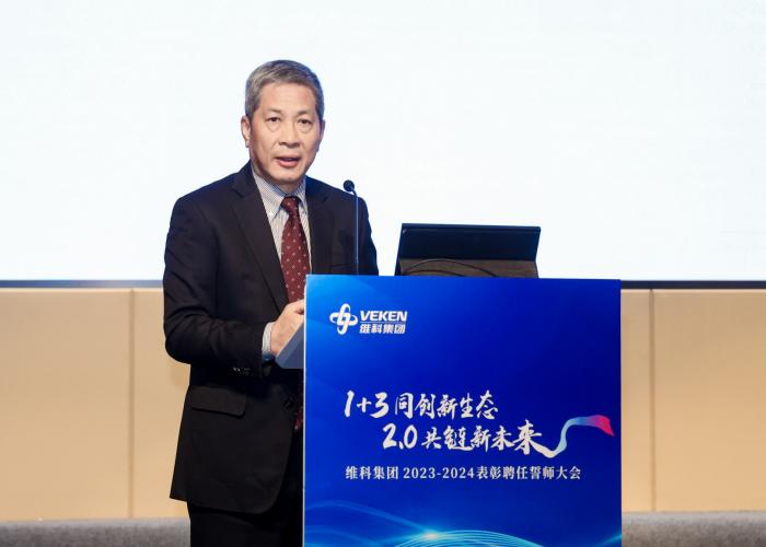 2月25日下午,維科集團(tuán)2023-2024表彰聘任誓師大會在寧波工業(yè)互聯(lián)網(wǎng)研究院會議中心隆重舉行。大會以綠色能源科技生態(tài)戰(zhàn)略和維科文化價值觀為指引,分為先進(jìn)表彰、戰(zhàn)略項(xiàng)目、聘任誓師三個篇章。集團(tuán)董監(jiān)事會領(lǐng)導(dǎo)、1+3 授聘干部、戰(zhàn)略生態(tài)鏈&重點(diǎn)項(xiàng)目相關(guān)負(fù)責(zé)人與團(tuán)隊(duì)成員;年度先進(jìn)、企業(yè)班子成員;維科學(xué)院學(xué)員代表、特訓(xùn)班五期預(yù)錄取學(xué)員代表等近200人現(xiàn)場參會,投資總部員工、企業(yè)代表(中層及以上干部、黨工團(tuán)負(fù)責(zé)人、青年骨干等)等通過視頻直播線上參會。
