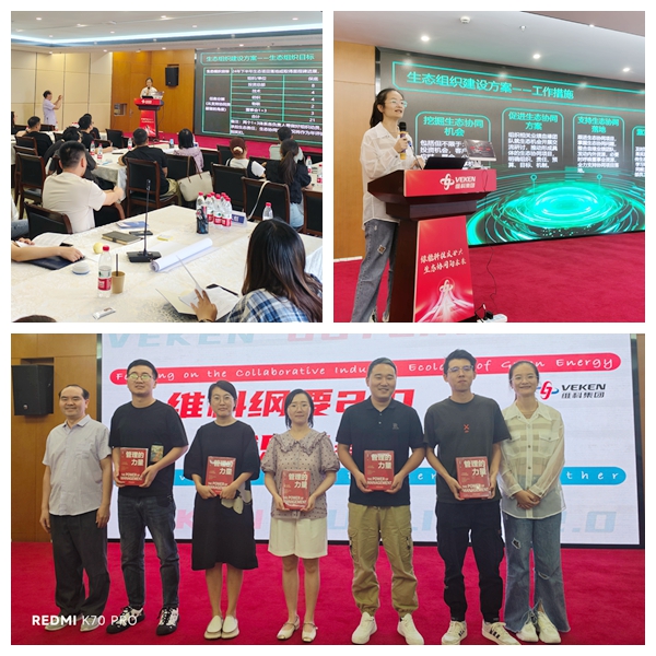 7月6日晚,五期班學(xué)員在班主任徐煦的帶領(lǐng)下學(xué)習(xí)了集團(tuán)“1+3綠色能源科技生態(tài)戰(zhàn)略協(xié)同成果首次發(fā)布會(huì)”的相關(guān)內(nèi)容,包括生態(tài)組織建設(shè)方案、首批生態(tài)協(xié)同獎(jiǎng)項(xiàng)目、生態(tài)平臺(tái)發(fā)布指引、各產(chǎn)業(yè)生態(tài)懸賞清單發(fā)布等。之后與會(huì)學(xué)員分成六組開展了《維科綱要2.0》知識(shí)競賽活動(dòng)。本次競賽題型包括單選題、多選題、填空題、判斷題、簡答題、論述題等,經(jīng)過現(xiàn)場(chǎng)生動(dòng)活潑、緊張有趣的競答,大家加深了對(duì)維科文化和《維科綱要2.0》的理解,最終優(yōu)勝小組贏得胡賽雄老師簽名版新書——《管理的力量》。
