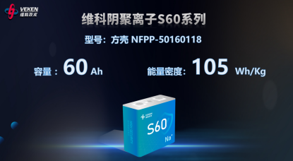 維科聚陰離子S180系列,型號(hào)為方殼 NFPP-72173207,容量180Ah;維科陰聚離子S60系列,型號(hào)為方殼 NFPP-50160118,容量60 Ah。兩款聚陰離子鈉電池在多個(gè)關(guān)鍵指標(biāo)上達(dá)到行業(yè)領(lǐng)先水平: