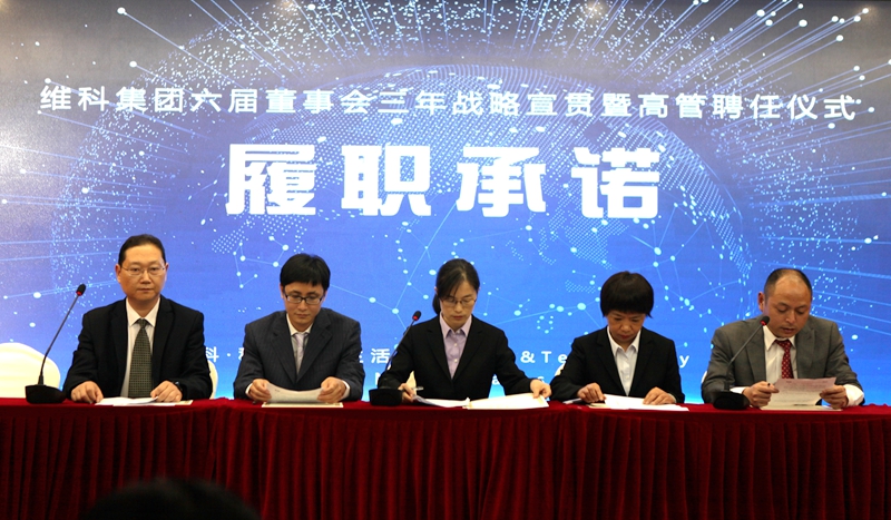 會議依次宣讀了六屆董事會董監(jiān)高、總部事業(yè)部門和職能部門干部、責(zé)任董監(jiān)事等人員的相關(guān)聘任文件,副總裁、事業(yè)部門和職能部門負(fù)責(zé)人、委派責(zé)任董監(jiān)事分別上臺履職承諾和宣誓,誓言擔(dān)當(dāng)起崗位職責(zé),承諾將全力以赴達(dá)成六屆董事會三年工作目標(biāo),為維科的長遠(yuǎn)發(fā)展奉獻(xiàn)全部的智慧和力量。