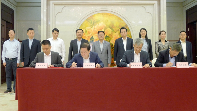 その後、海曙區(qū)人民政府區(qū)長(zhǎng)褚孟形、褚健教授、國(guó)投創(chuàng)業(yè)総経理高の愛(ài)民、維科グループ総裁の何承命は各方面の代表として「協(xié)力協(xié)議」を締結(jié)した?!笇幉üI(yè)インターネット研究院有限會(huì)社」の各プロジェクトを共同で推進(jìn)する。