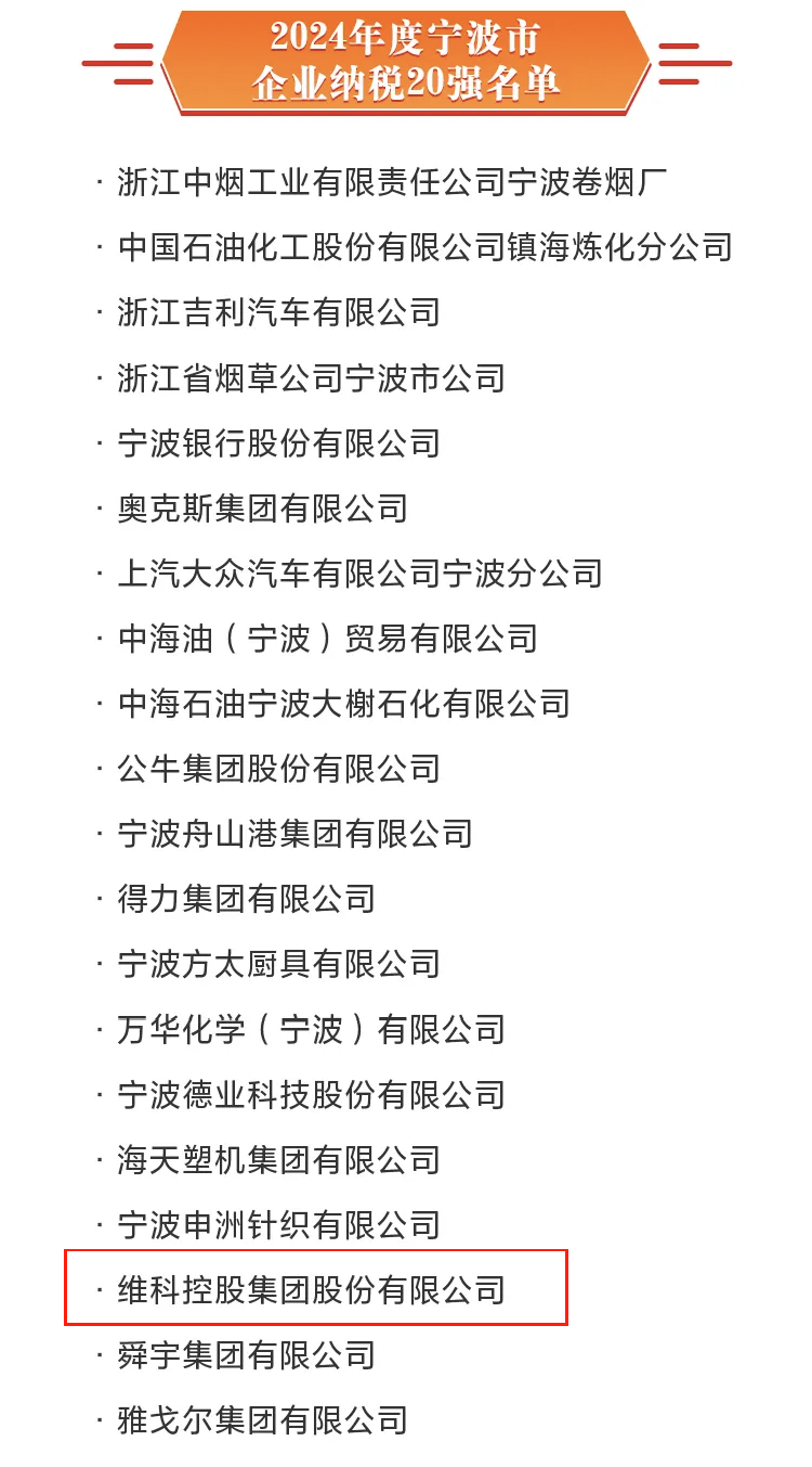 6月13日、2025年寧波市 「科學(xué)技術(shù)革新と産業(yè)革新の深い統(tǒng)合を促進し、民間経済の質(zhì)の高い発展を加速するための會議 」と 「2025寧波起業(yè)家精神とイノベーションリスト 」リスト発表活動が開催され、維科グループは、「2024寧波納稅トップ20企業(yè) 」賞を受賞した。「2024年寧波納稅トップ20企業(yè) 」を獲得した。
